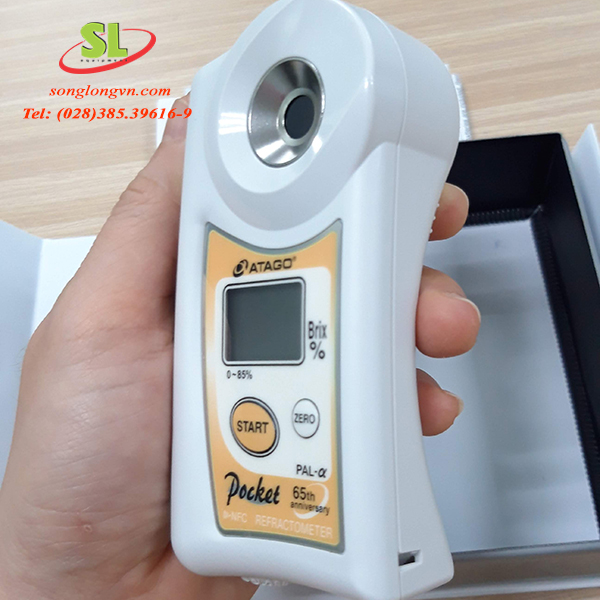 - Máy đo độ ngọt pal-alpha Atagođược dùng để đo brix của trái cây, nước uống, phục vụ ngành sản xuất thực phẩm (sữa, nước ngọt, xì dầu, mứt,...), có thang đo từ 0 - 85% brix, độ bền cao.