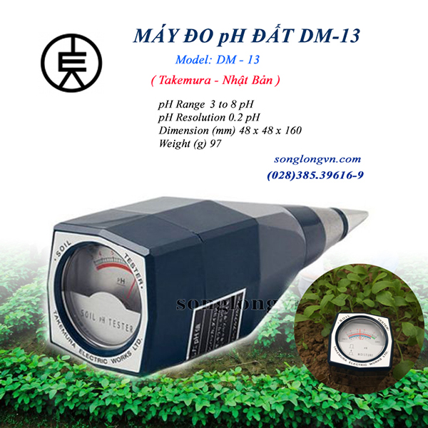 - Máy đo pH đất model DM-13 của Takemura Nhật Bản chuyên dùng đo pH của đất tốt nhất, độ bền cao, dễ sử dụng, không dùng pin nên dễ dàng đi hiện trường, là thiết bị được nhiều bà con nông dân tin dùng nhất hiện nay. Bảo hành 12 tháng.